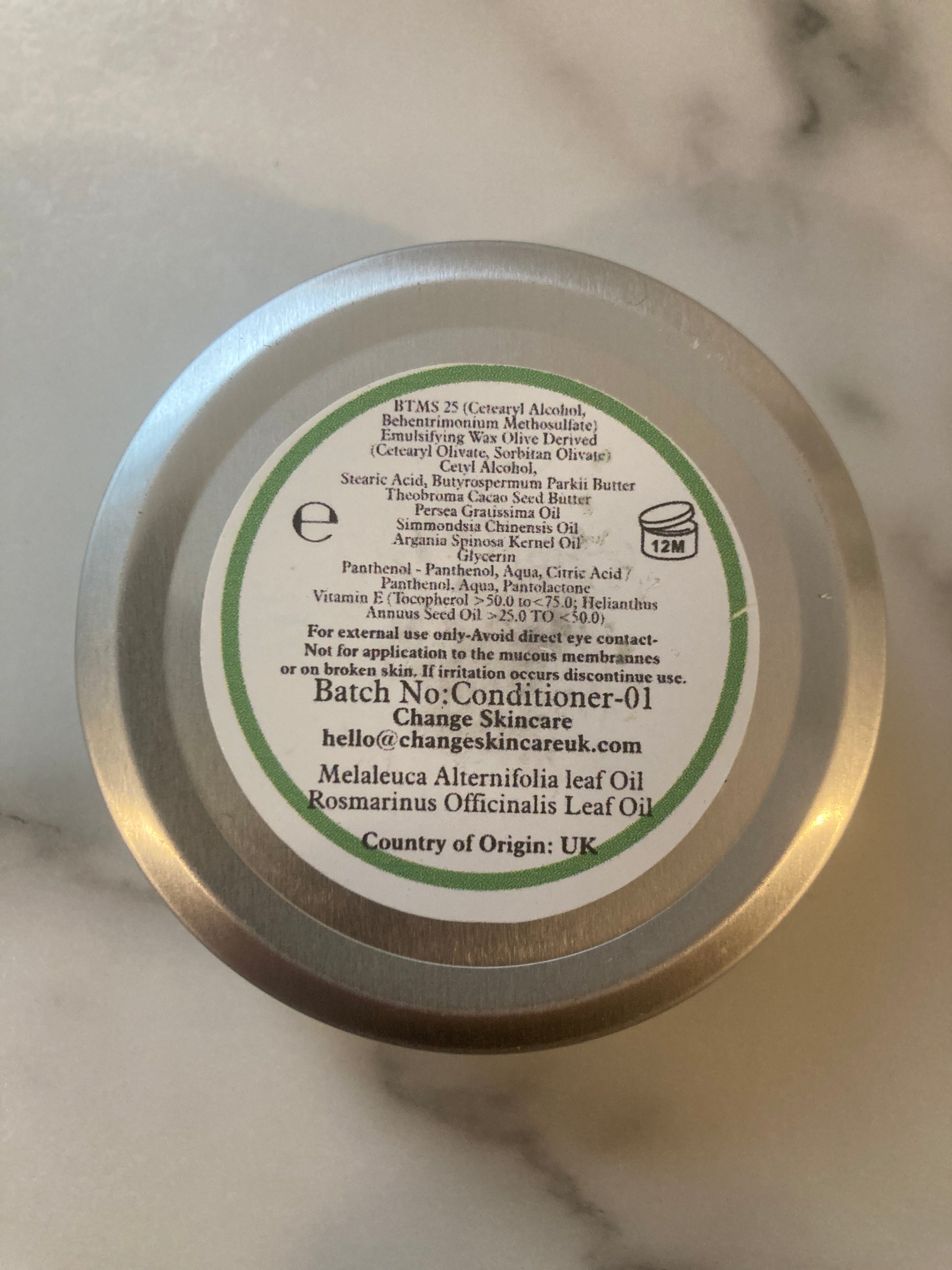BTMS 25, Cetyl Alcohol, Emulsifying Wax Olive derived, Butyrospermum Parkii Butter, Theobroma Cacao Seed Butter, Glycerin, Stearic Acid, Persea Gratissima Oil, Simmondsia Chinesis Seed Oil, Argania Spinosa Kernal OIl, Panthenol, Melaleuca Alternifolia Leaf Oil, Rosmarinus Officinalis Leaf Oil
