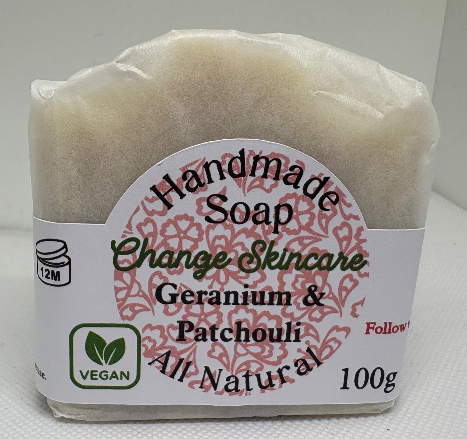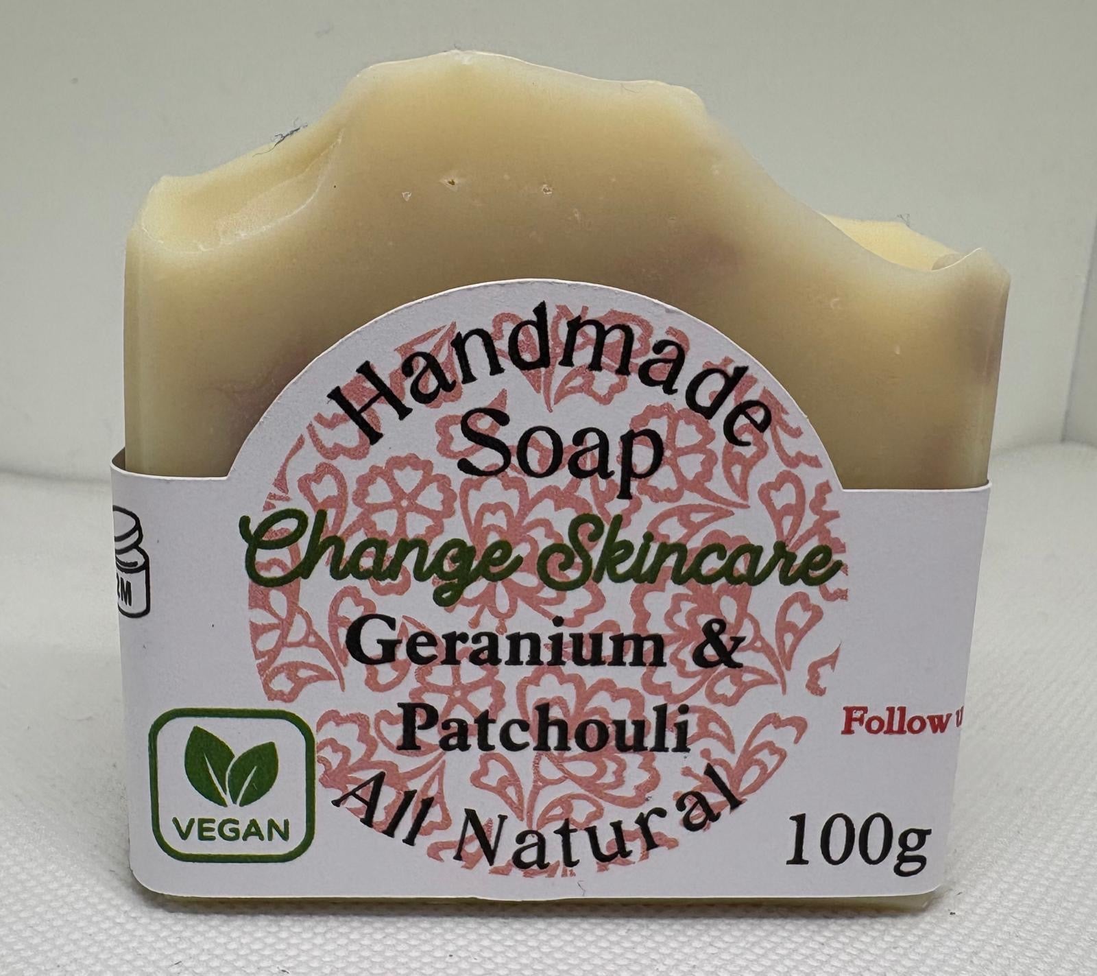 This vegan soap bar contains geranium and patchouli for a natural and luxurious cleansing experience.