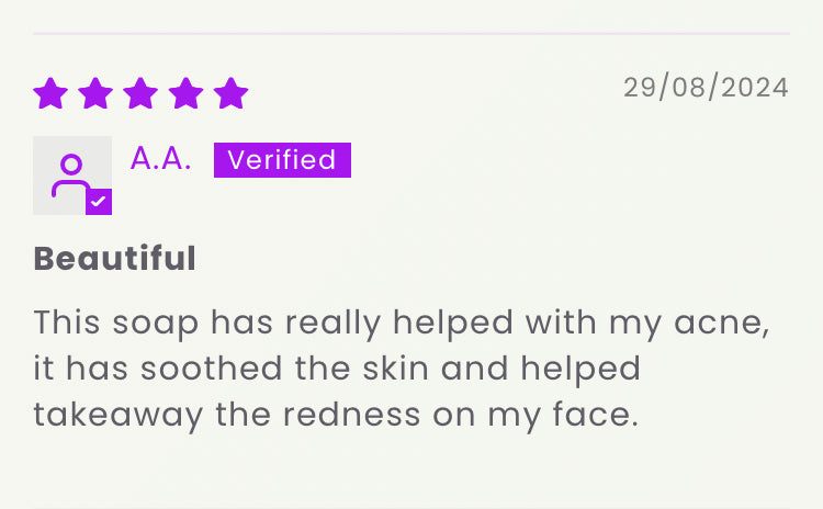 This soap has really helped with my acne, it has soothed the skin and helped takeaway the redness on my face.