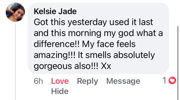 B.A. I have always suffered with dry skin on my face and with using the luxury hot cloth cleanser everyday on a night my face feels the smoothest it has ever been!! 100% recommend this product to anyone
