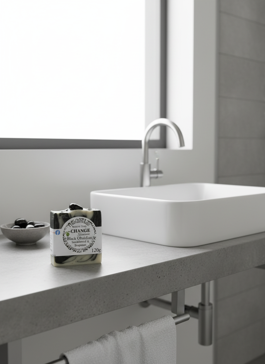 Obsidian Crystal Soap Bar - Grounding, Protection & Emotional Healing